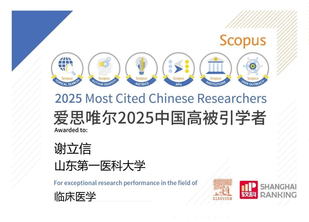 2026年1月30日,爱思唯尔(Elsevier) 正式发布2025“中国高被引学者” (Highly Cited Chinese Researchers) 榜单。中国眼科领域共有11名专家入选,山东第一医科大学附属青岛眼科医院谢立信院士连续三年入榜。